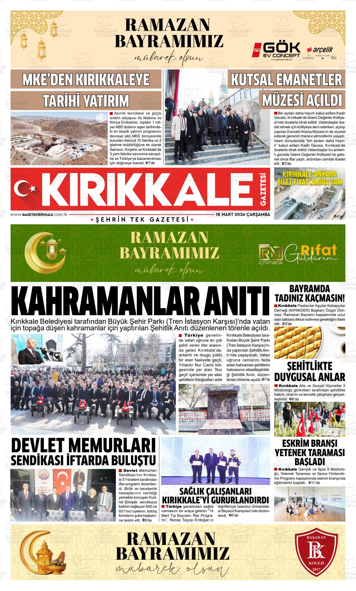 Kırıkkale Yerel Gazeteleri 13 Mart 2026, Cuma Günü Manşeti