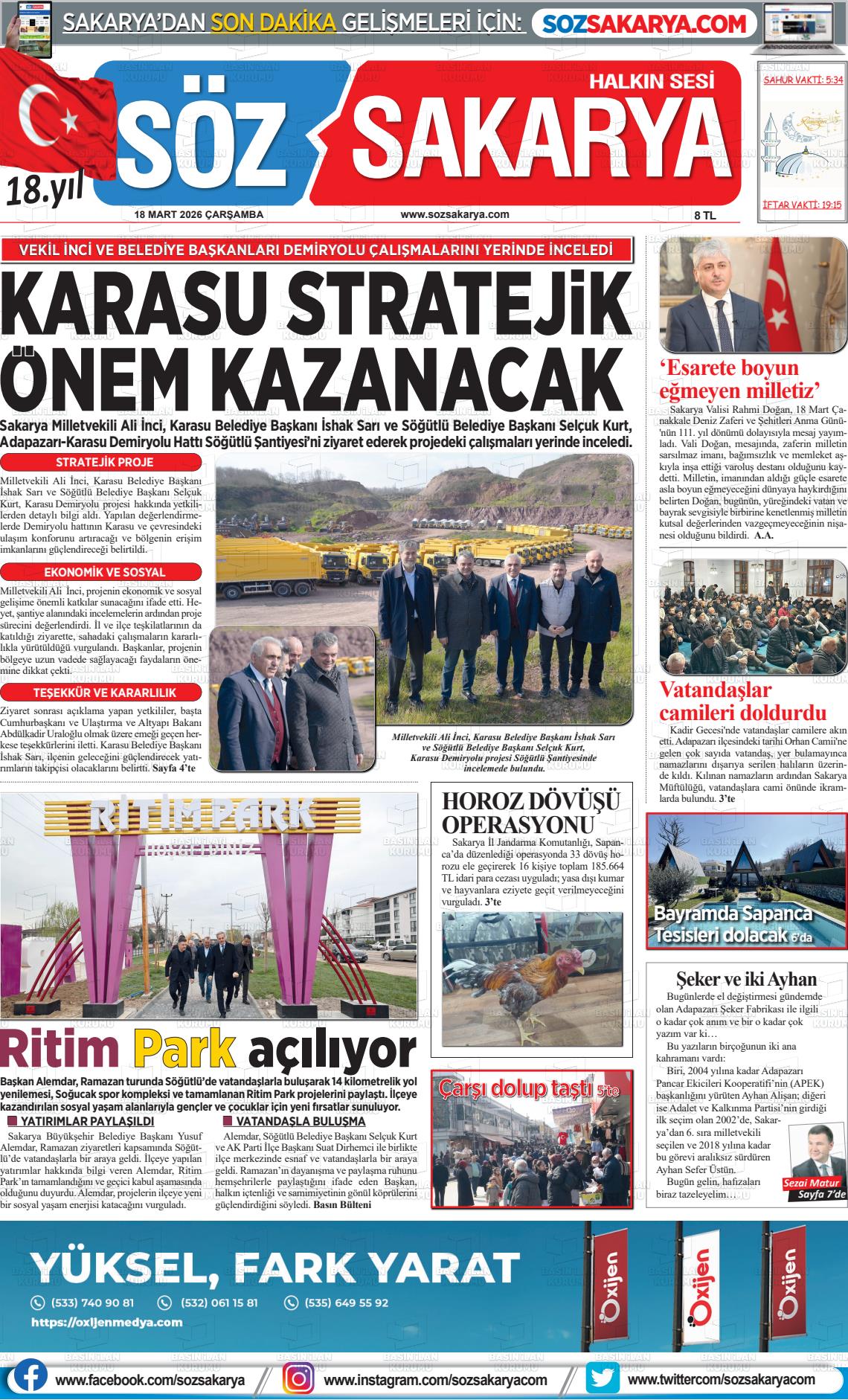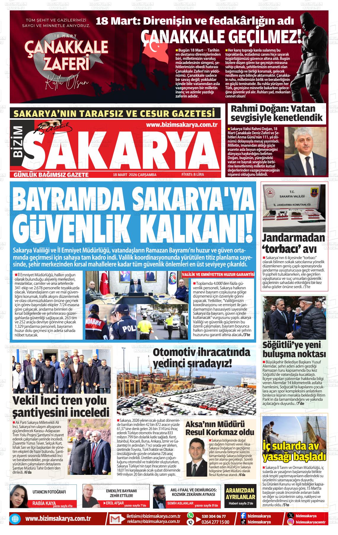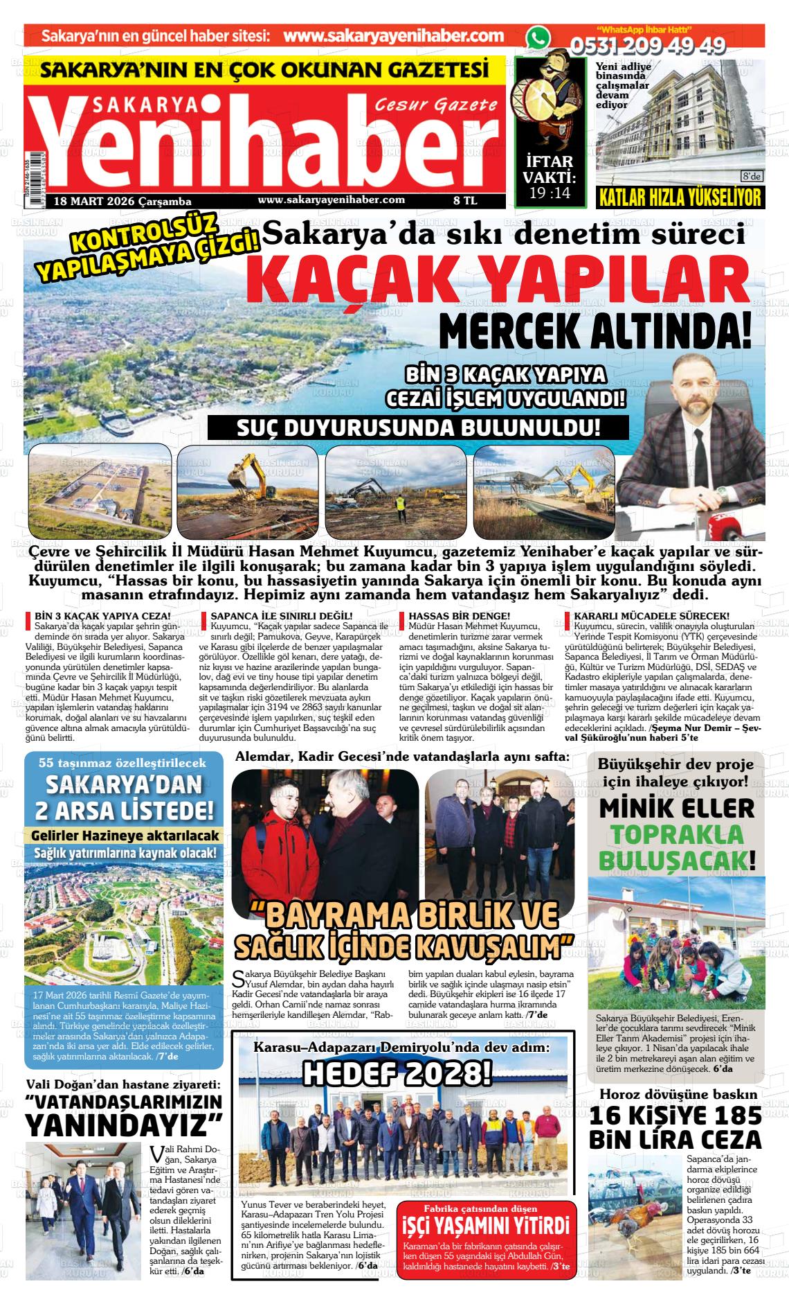 Sakarya Yerel Gazeteleri 13 Mart 2026, Cuma Günü Manşeti