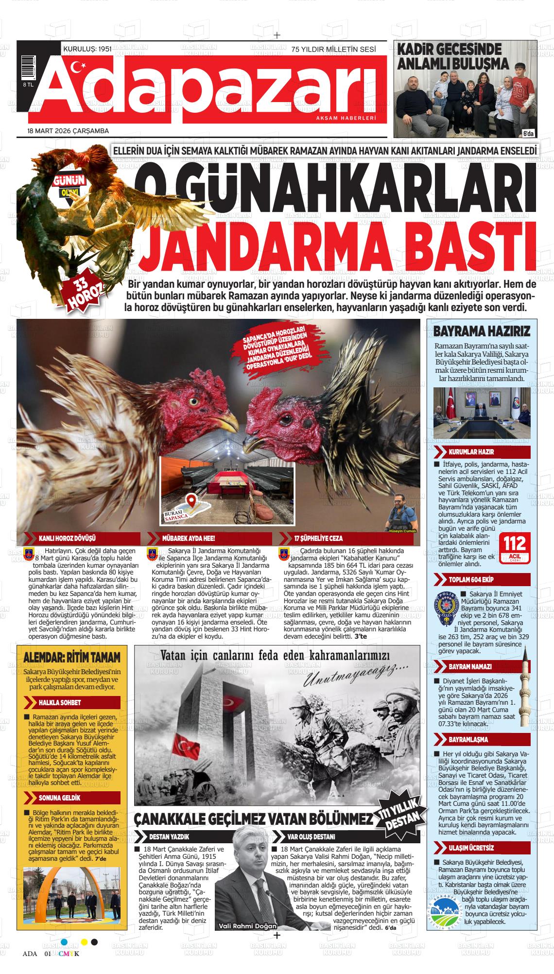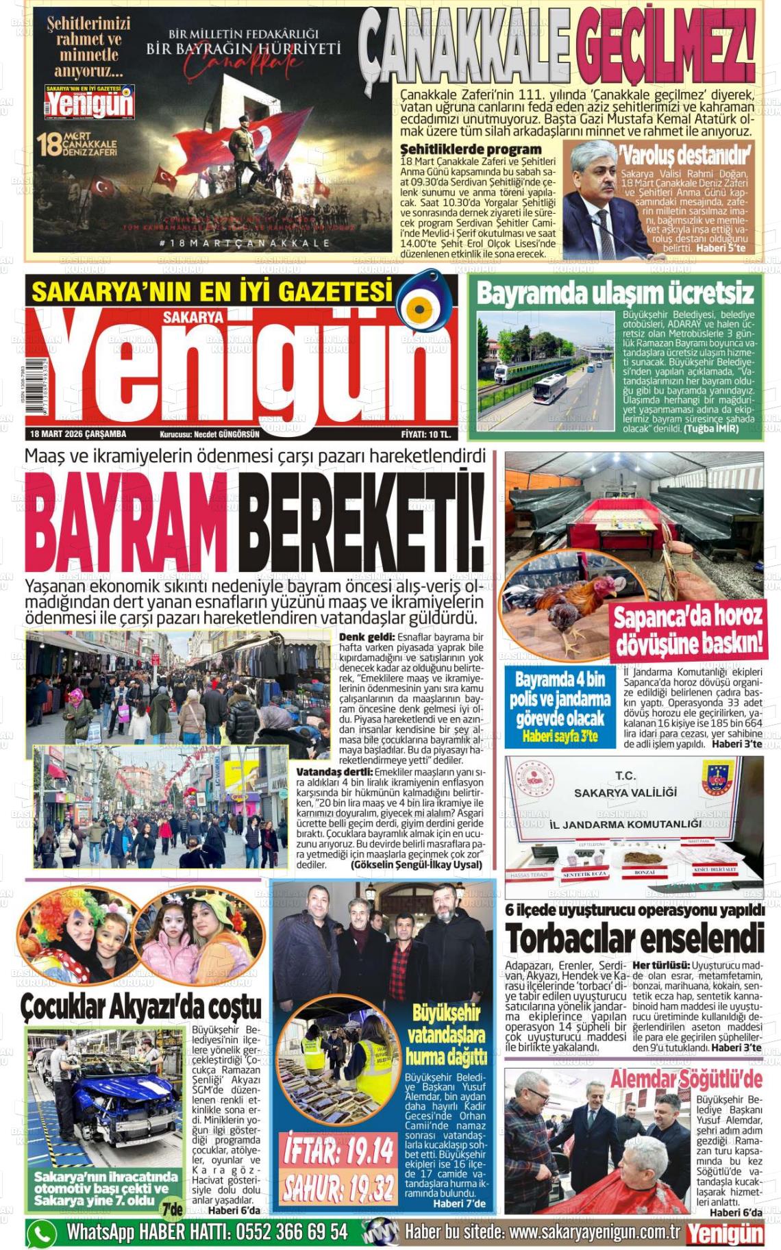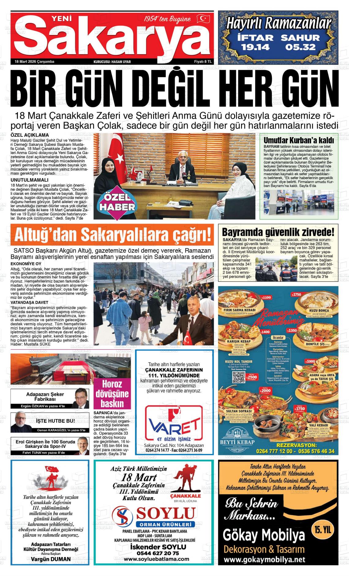 Sakarya Yerel Gazeteleri 13 Mart 2026, Cuma Günü Manşeti