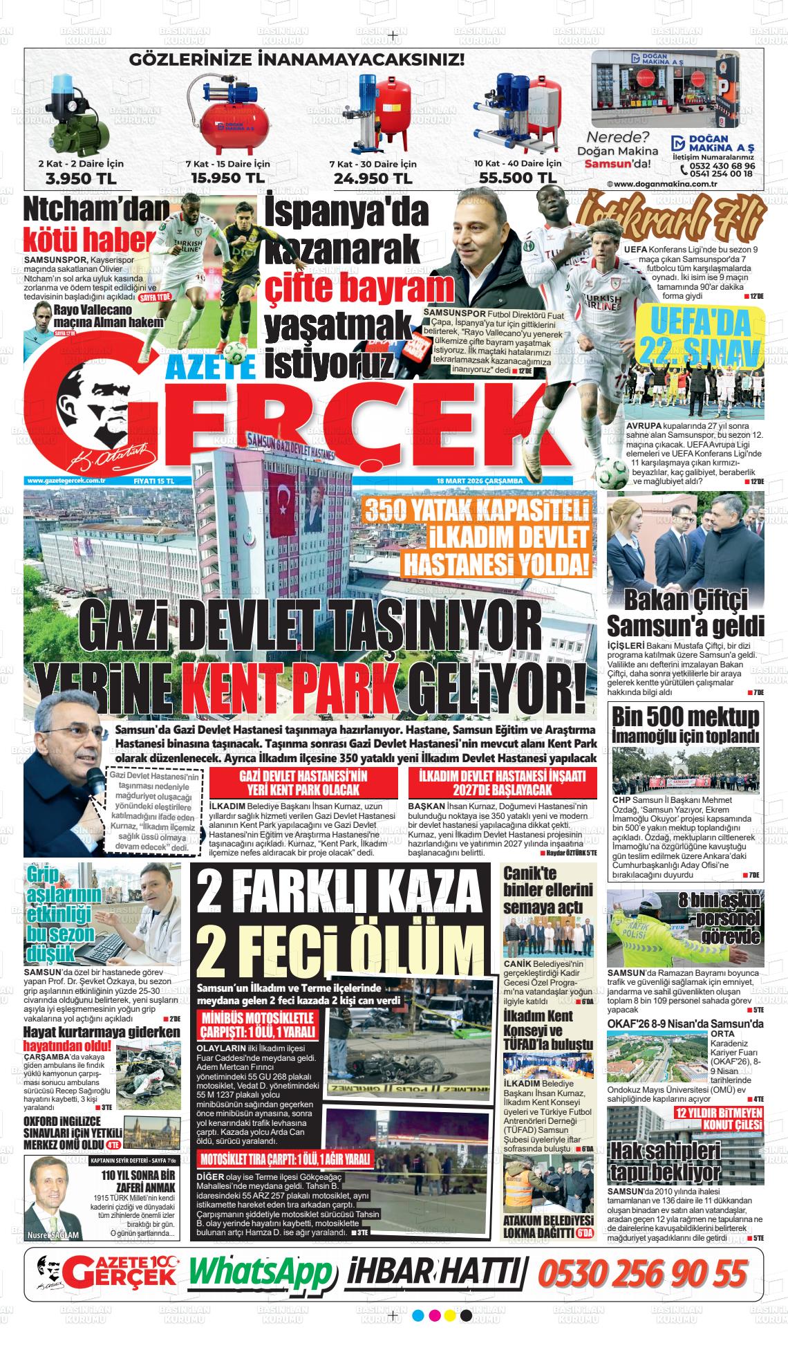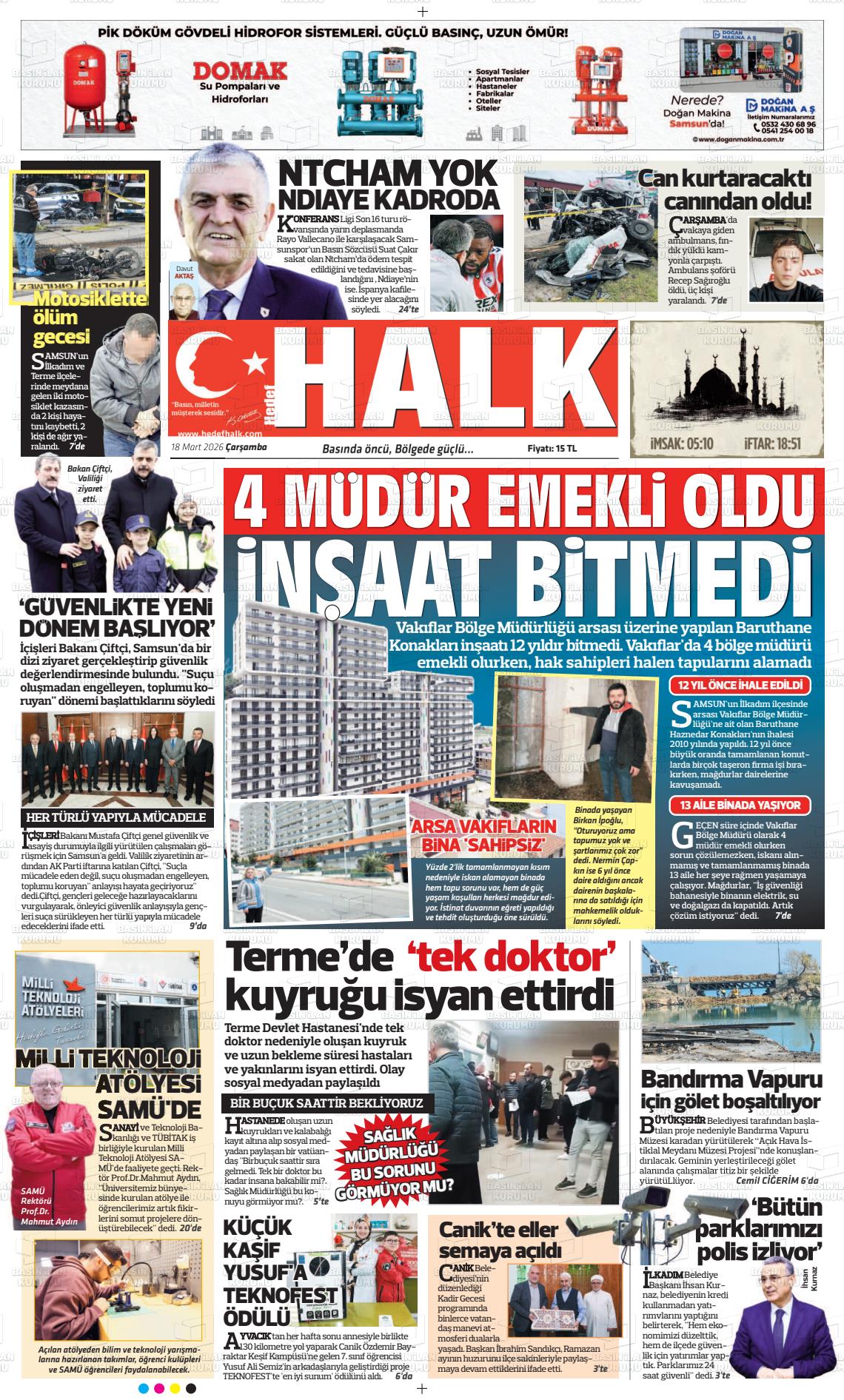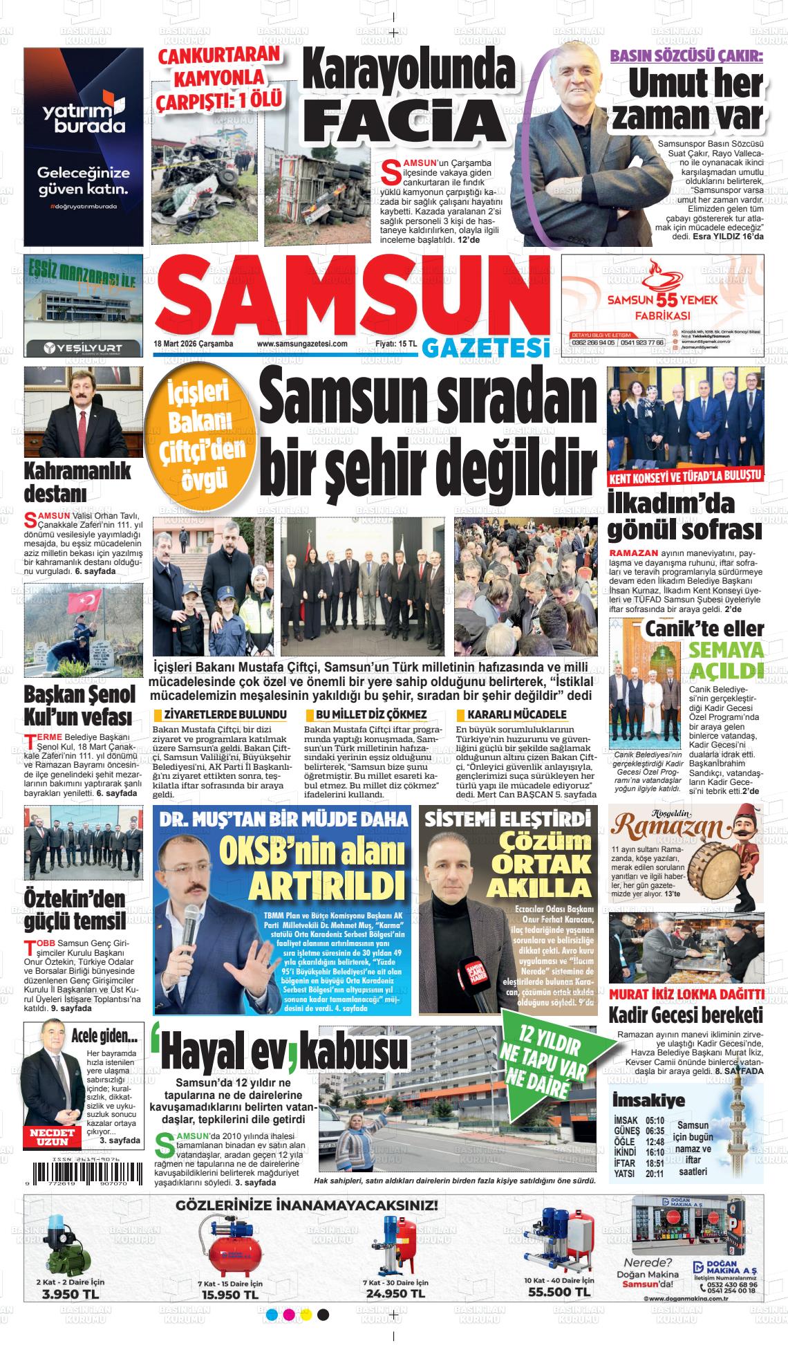 Samsun Yerel Gazeteleri 18 Mart 2026, Çarşamba Günü Manşeti