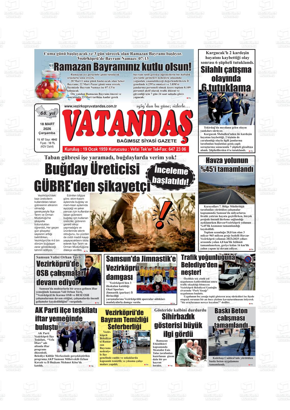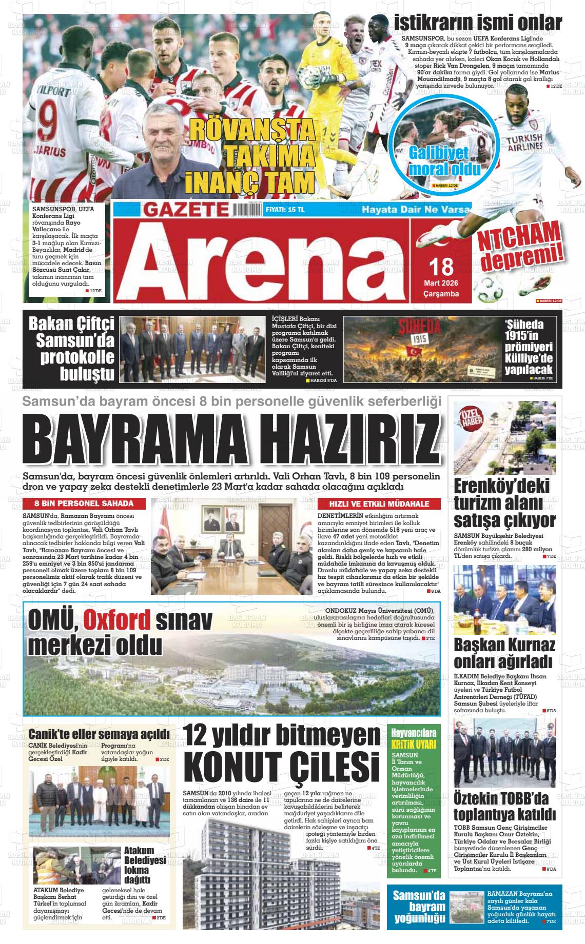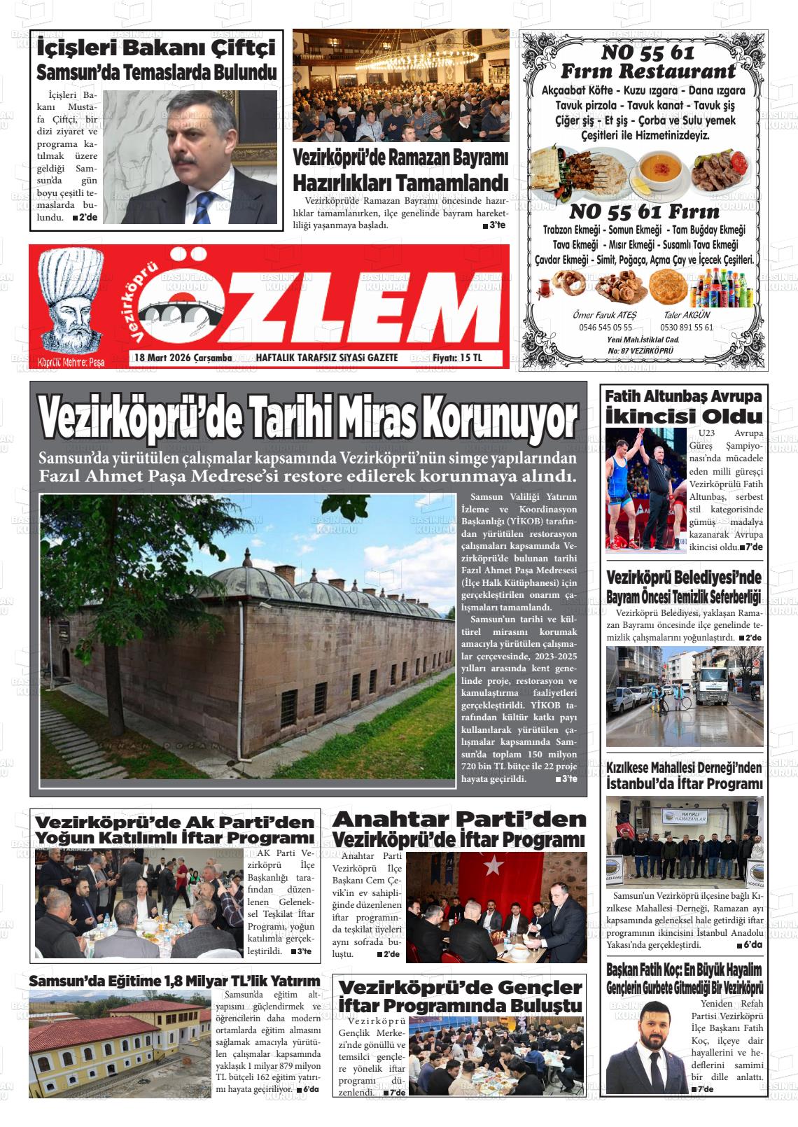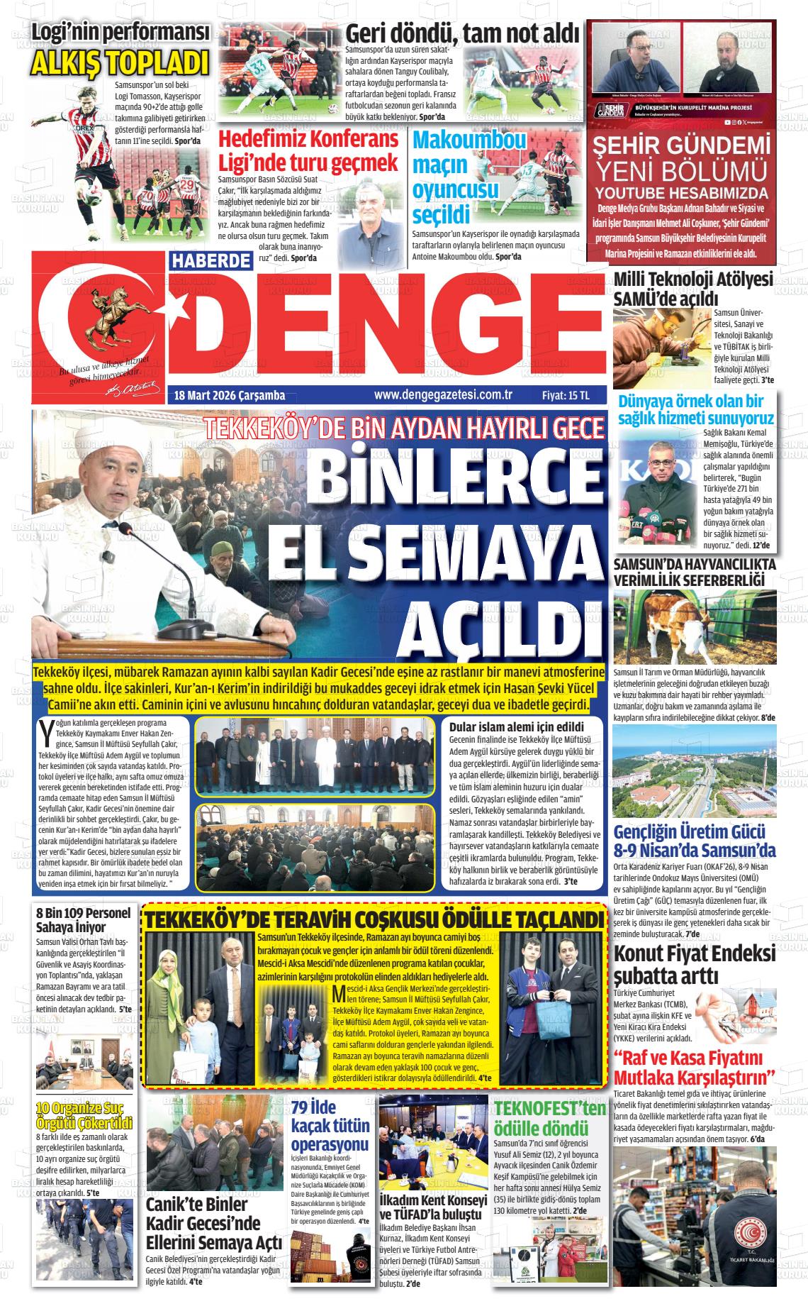 Samsun Yerel Gazeteleri 18 Mart 2026, Çarşamba Günü Manşeti