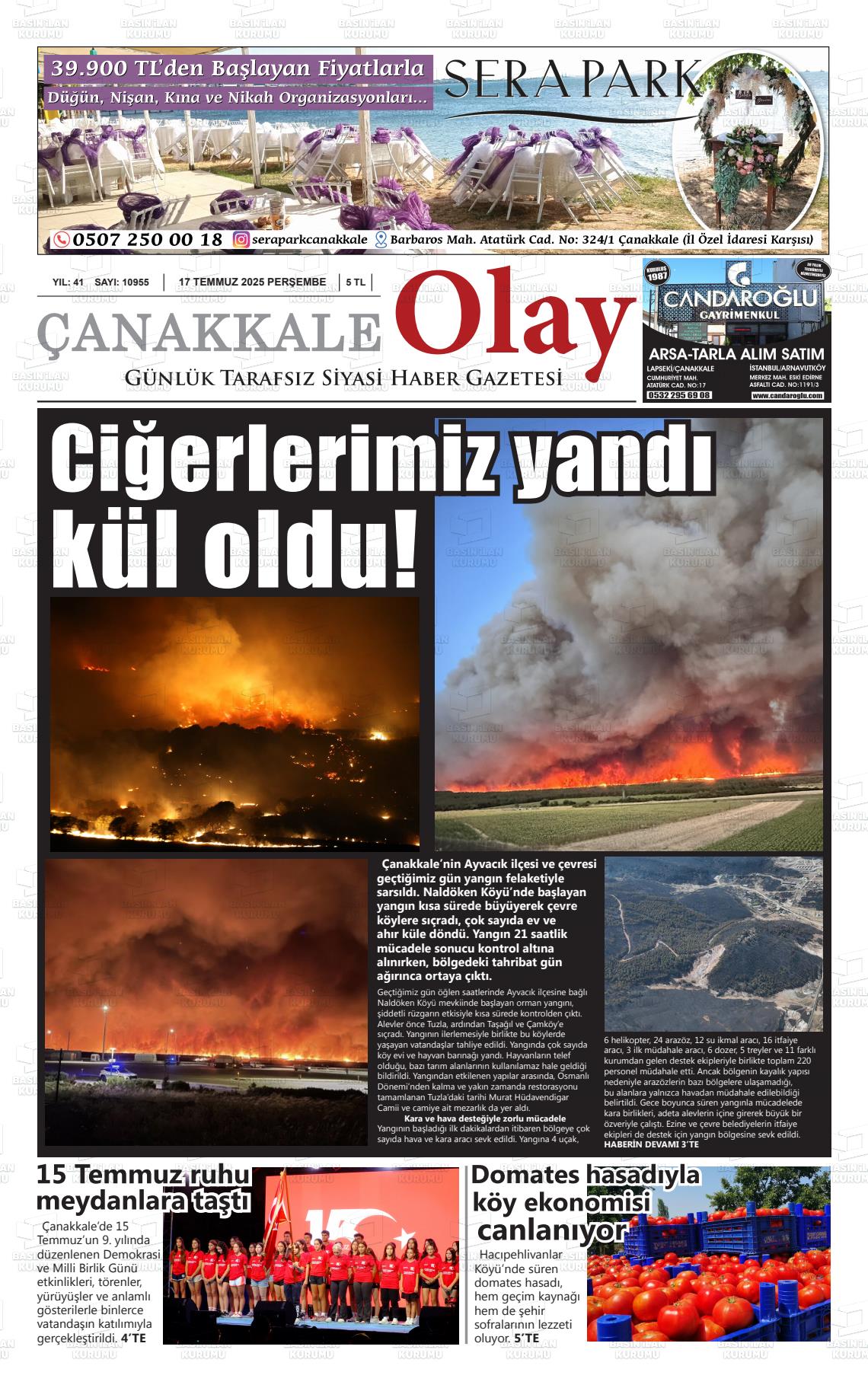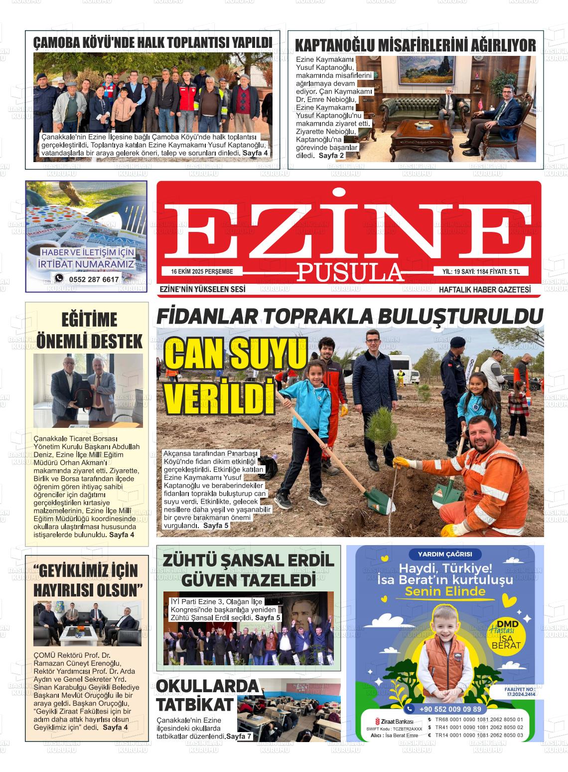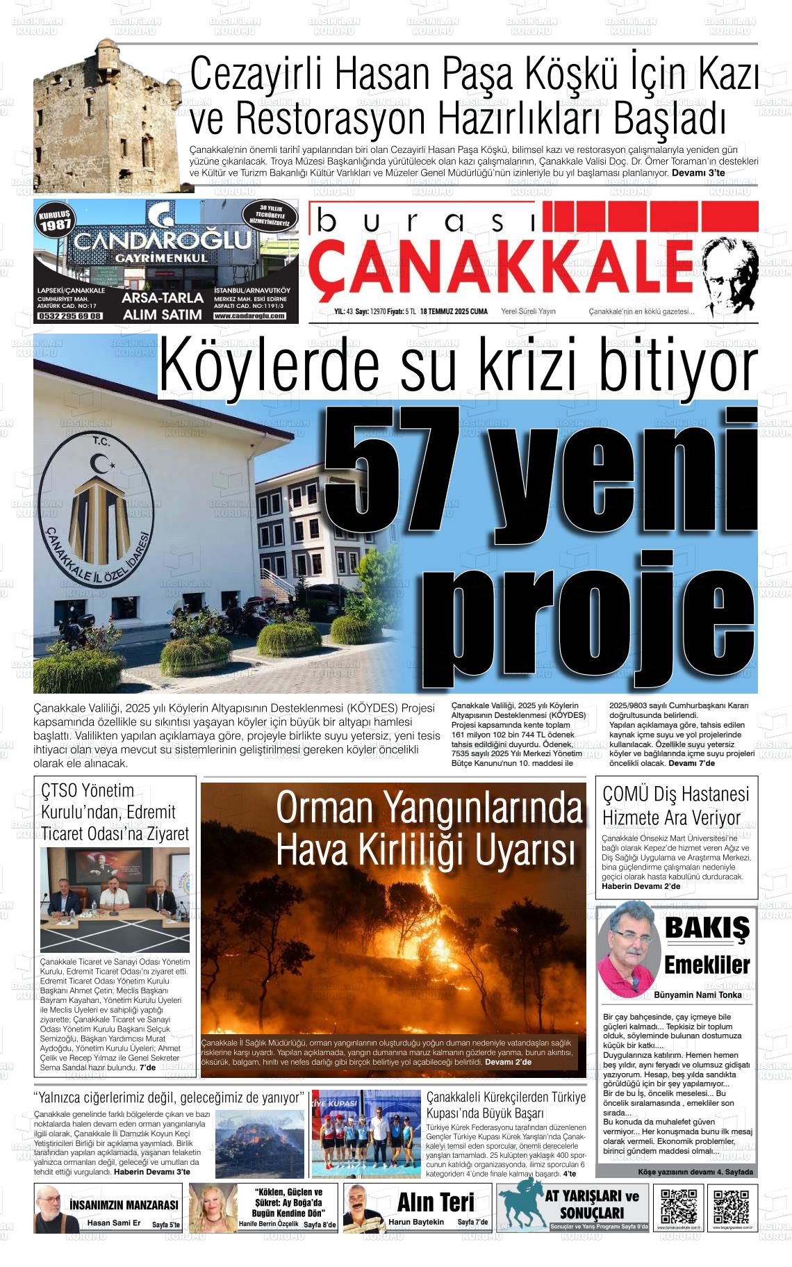 Çanakkale Yerel Gazeteleri 16 Ekim 2025, Perşembe Günü Manşeti
