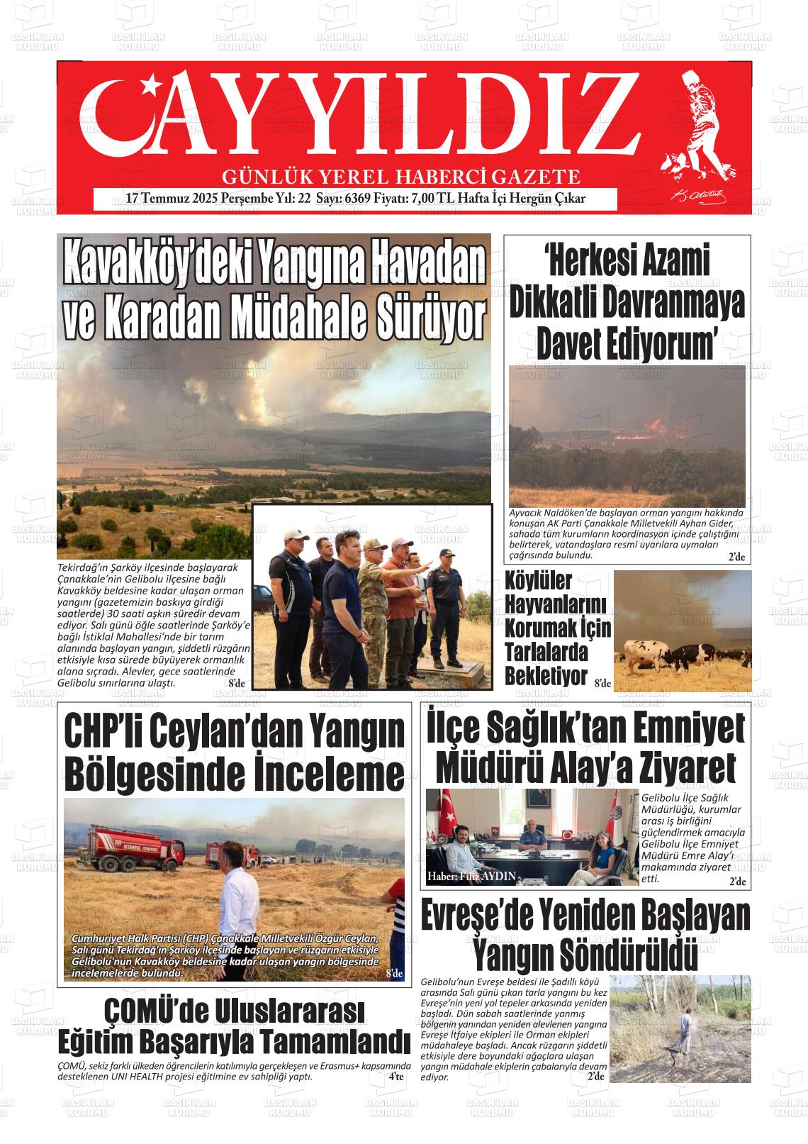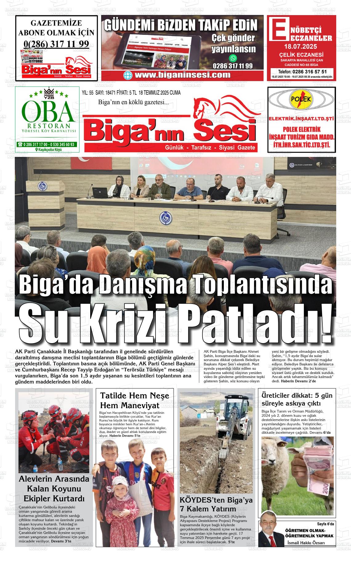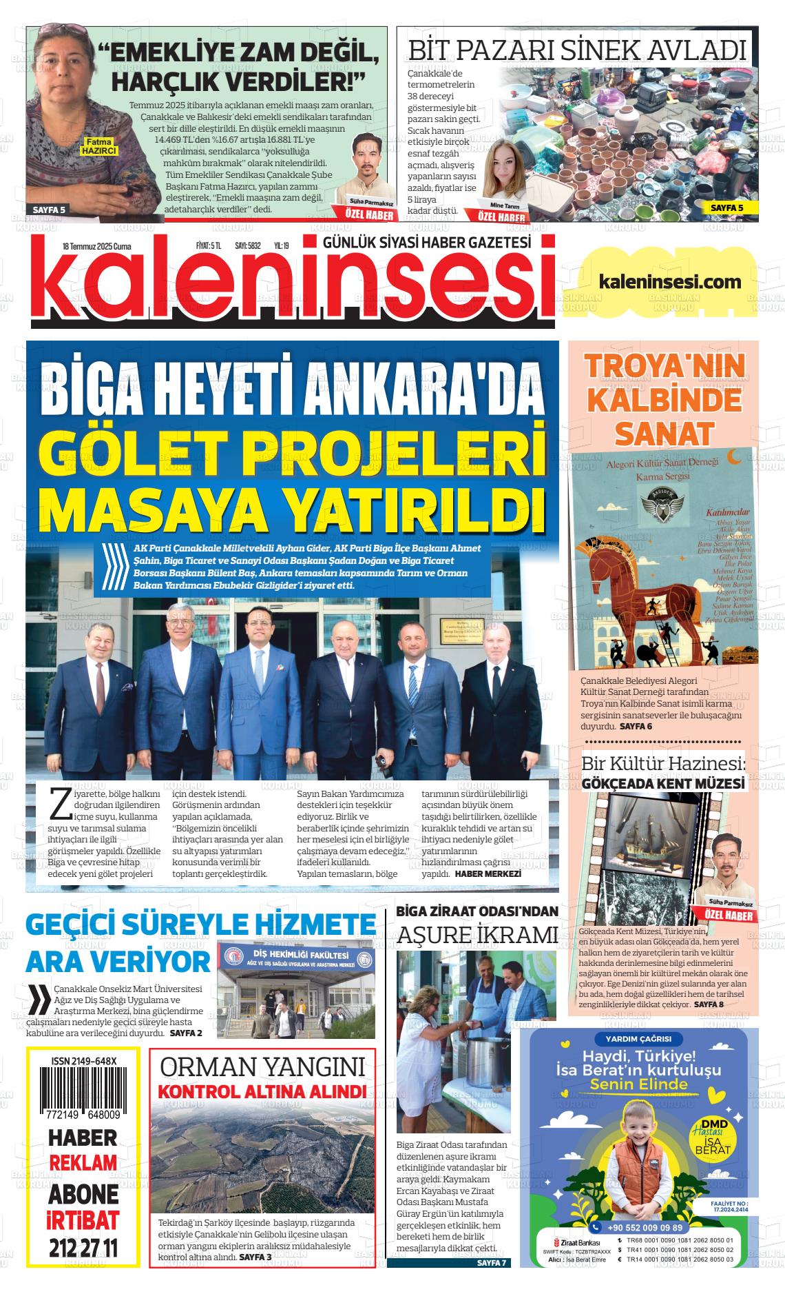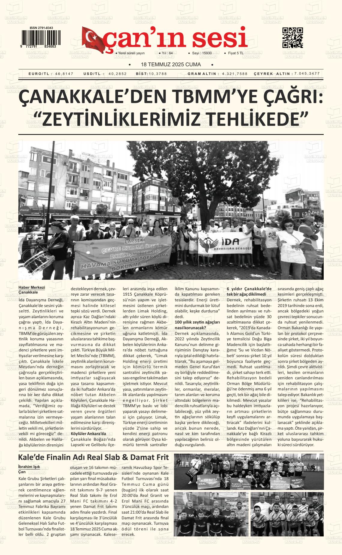Çanakkale Yerel Gazeteleri 16 Ekim 2025, Perşembe Günü Manşeti